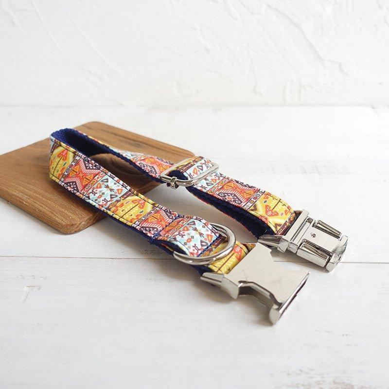 - Leash Components: Matching ethnic – patterned fabric with a metal clasp