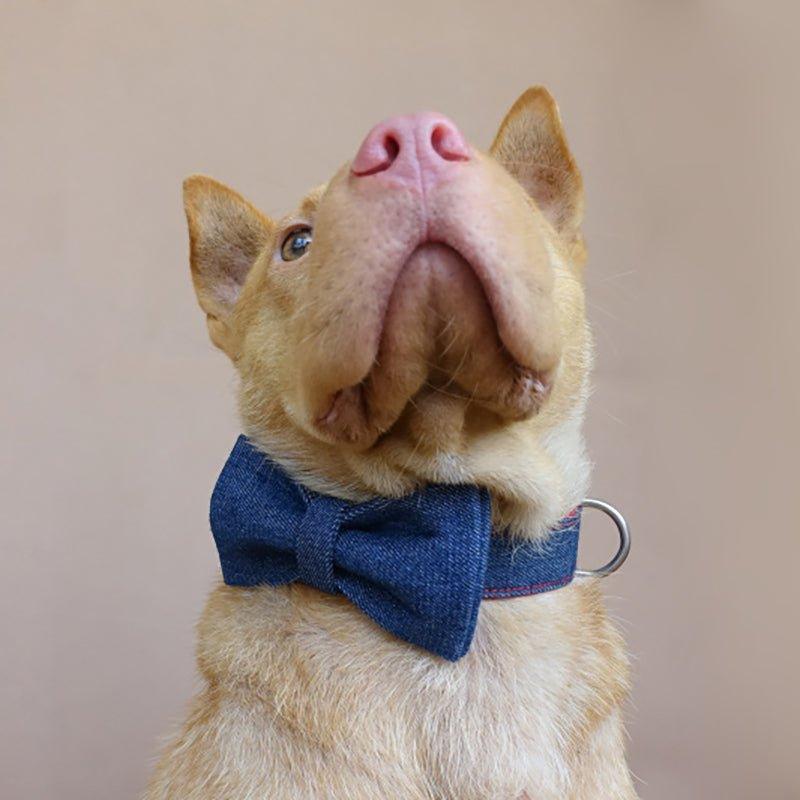 - Design Features: Collar has adjustable quick – release metal buckle, D – ring, and red stitching; leash has swivel metal hook, red/blue denim strap, and metal D – ring
