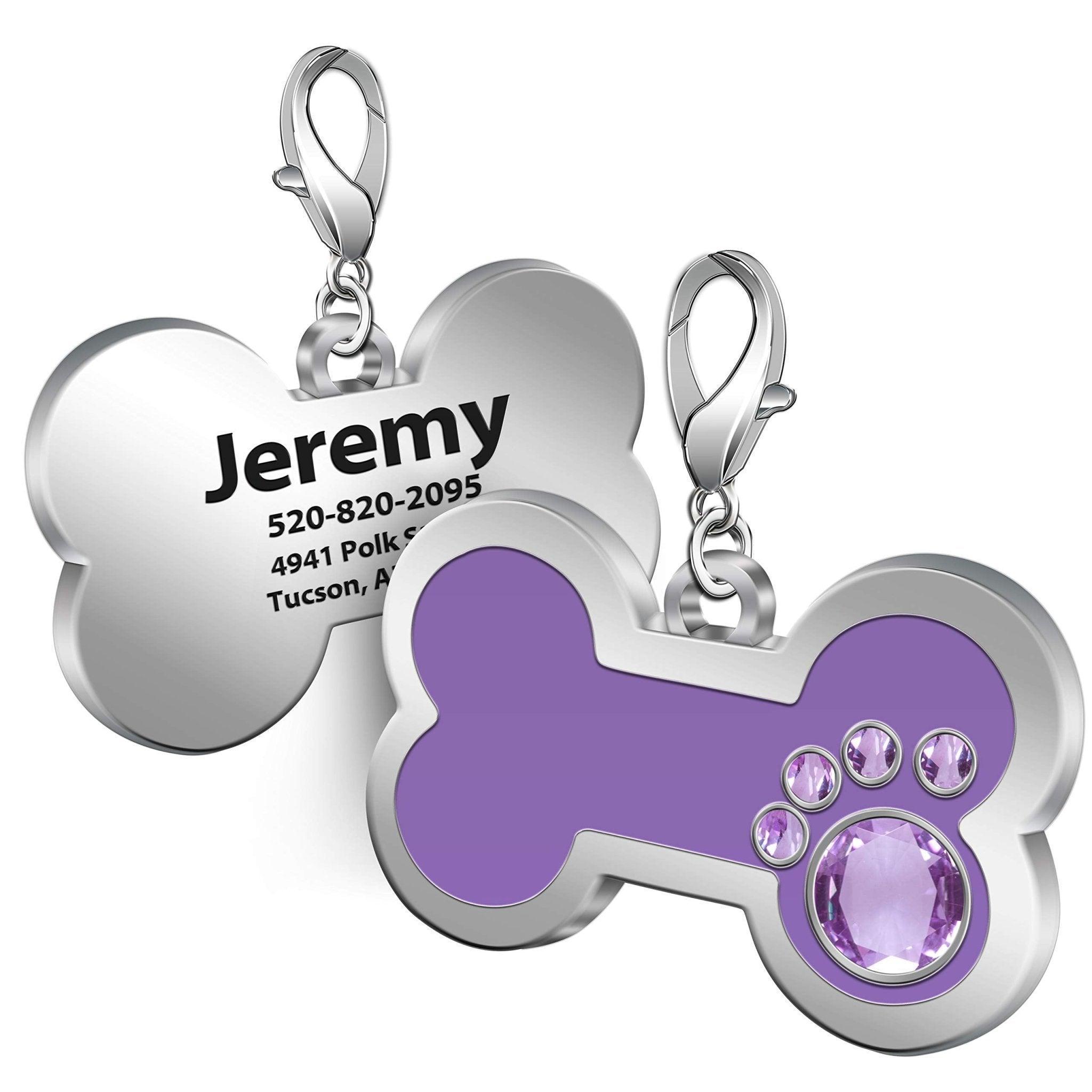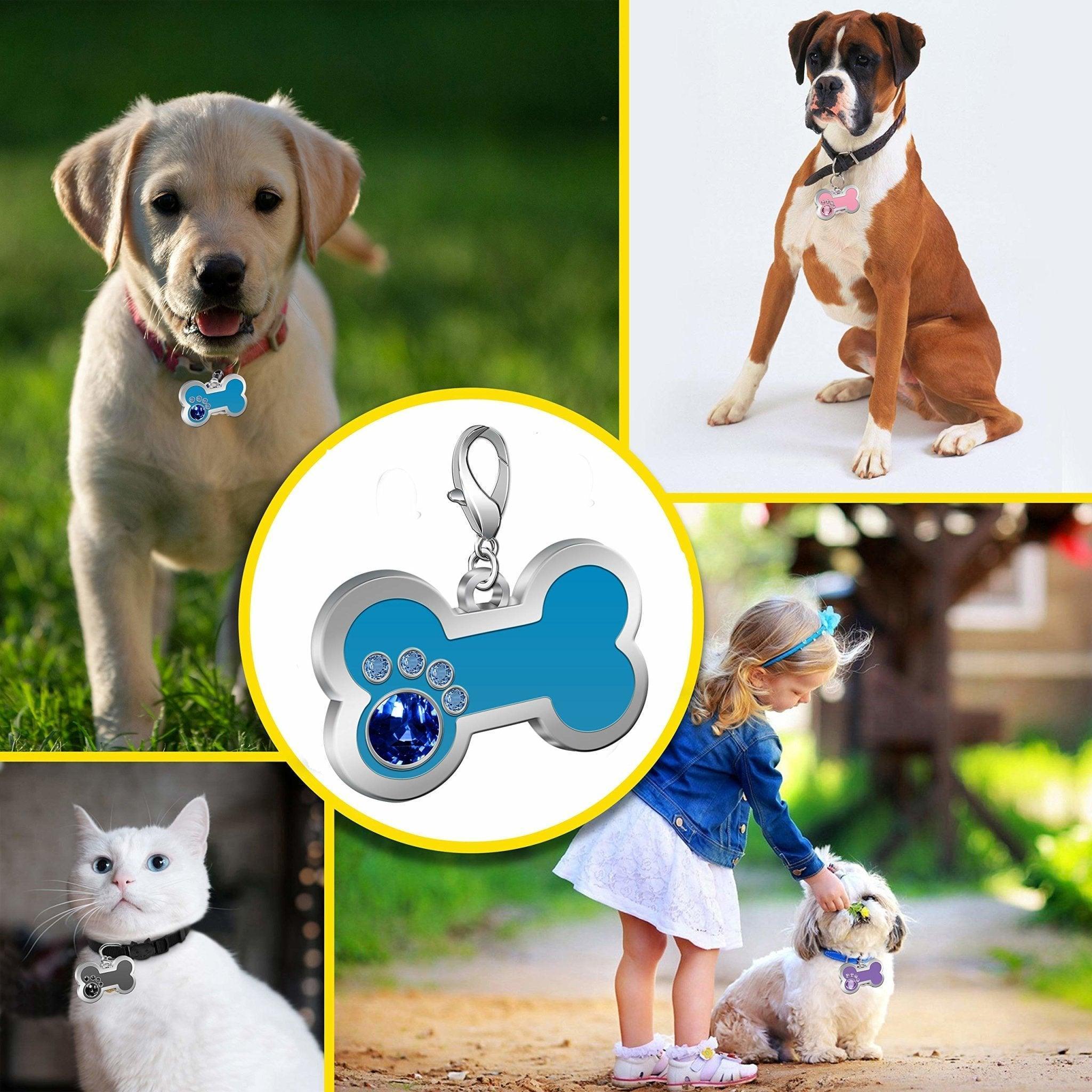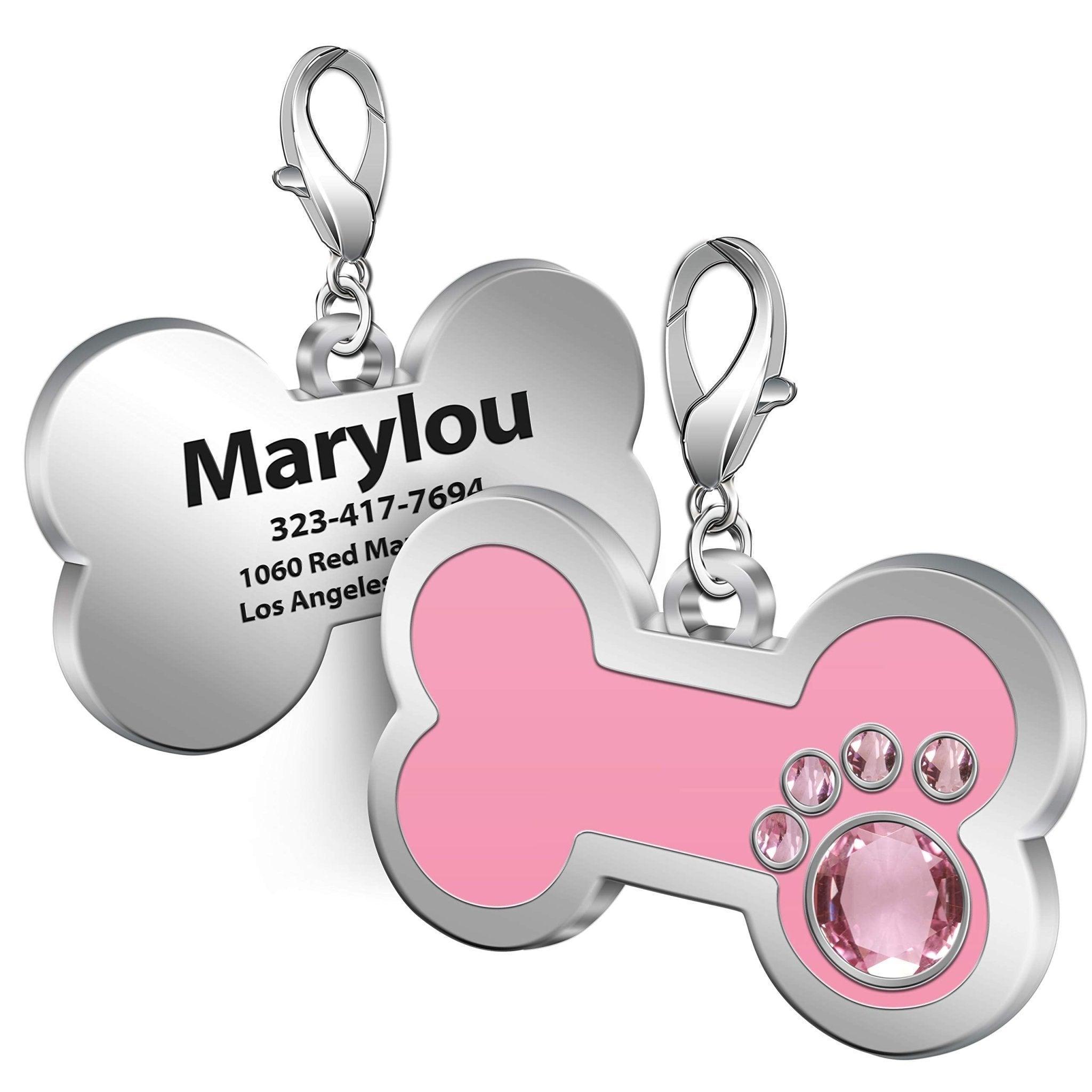 - Design: Bone – shaped with a paw – print motif made of gemstones