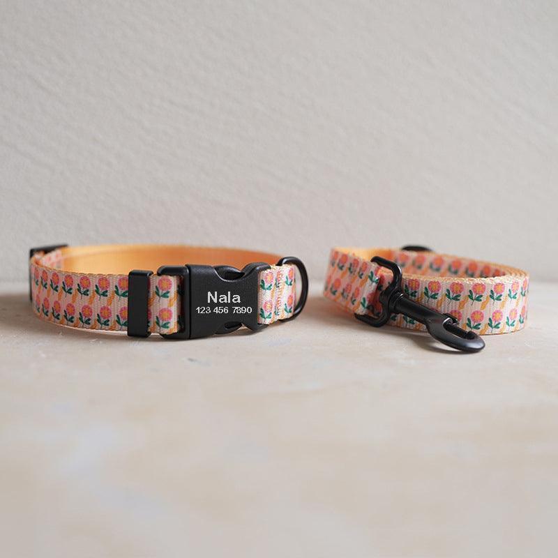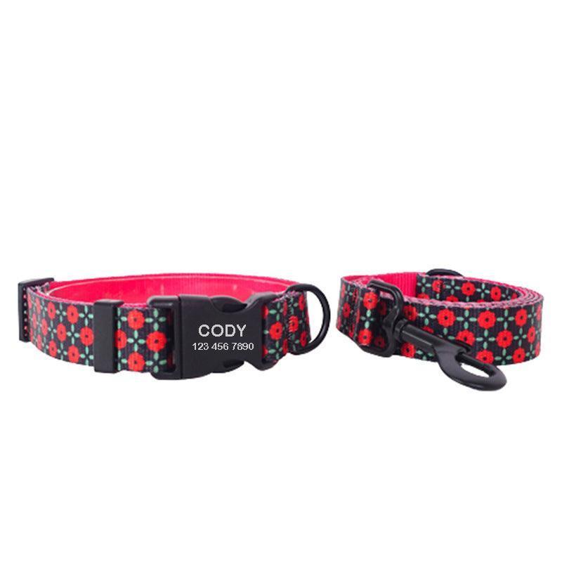 - Design: Collars have adjustable quick – release buckles, O – rings for leash attachment, and personalized engraved name/phone text. Leashes have matching patterns, a central ring for control, and a metal/plastic hook for attachment.