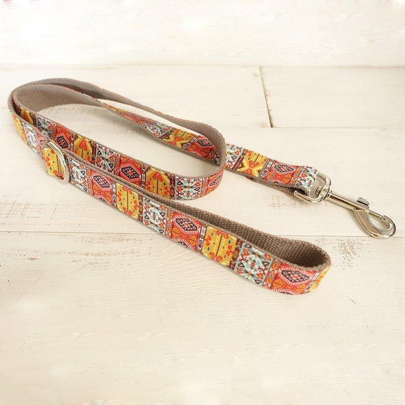 This dog collar and leash set offers a perfect blend of style and functionality. It is crafted to be durable and comfortable for your furry friend, while also adding a touch of fashion with its unique design.