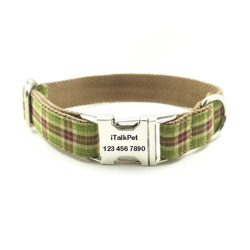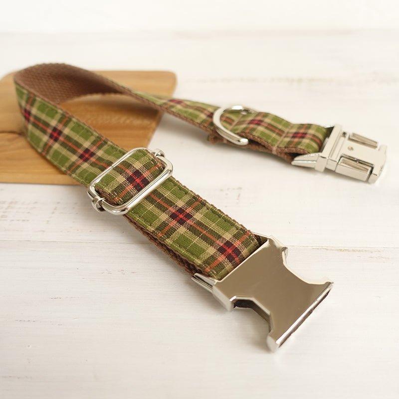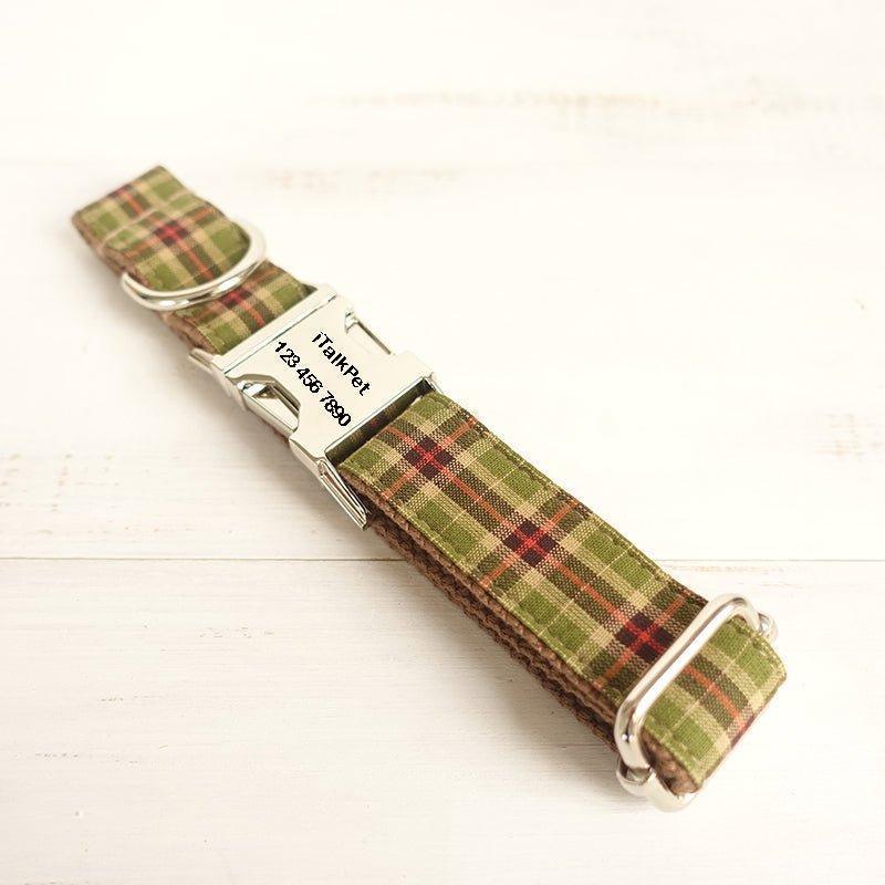 - Design: Classic plaid pattern, quick – release metal buckle, side D – ring, optional engraved metal plate