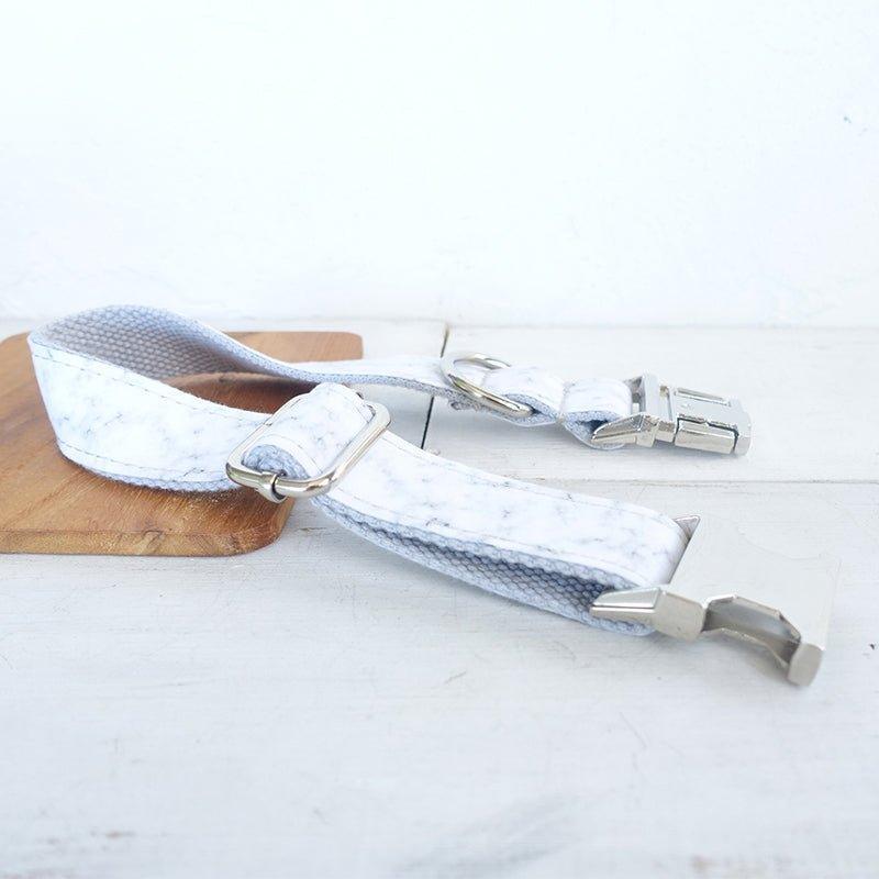 - Design: Marble print on the fabric, swivel metal clip on the leash to prevent tangling