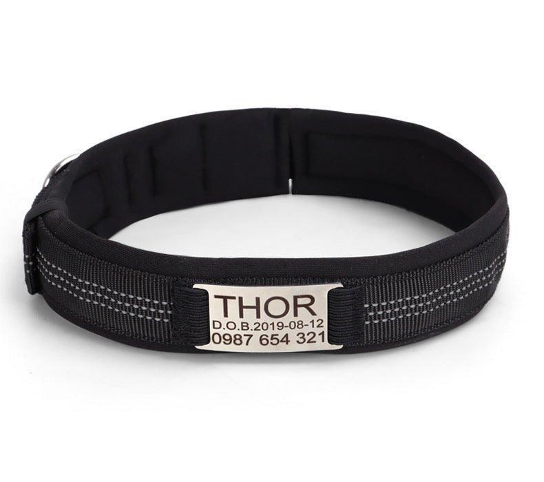 - Inner Lining: Soft black neoprene/foam for comfort against the dog’s neck