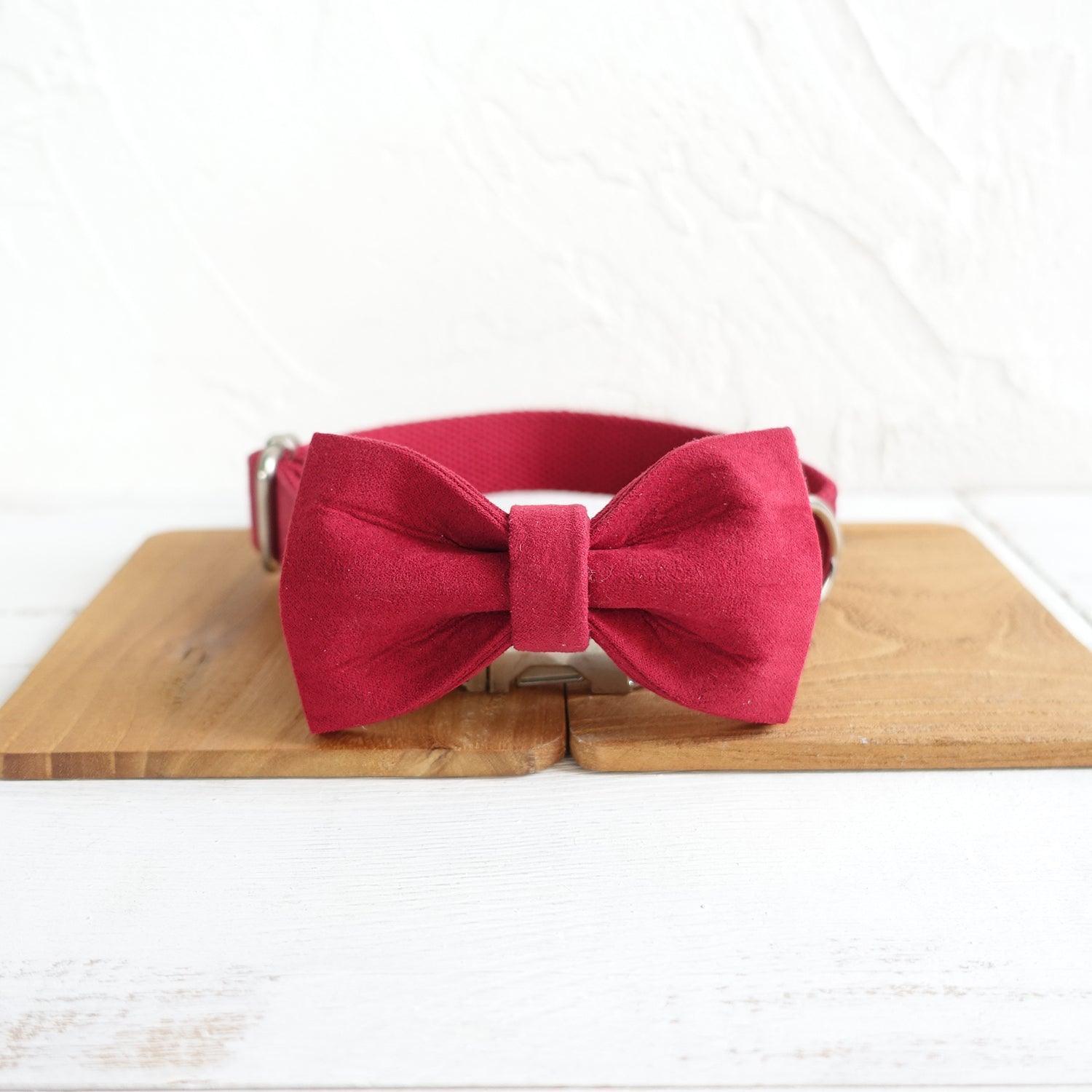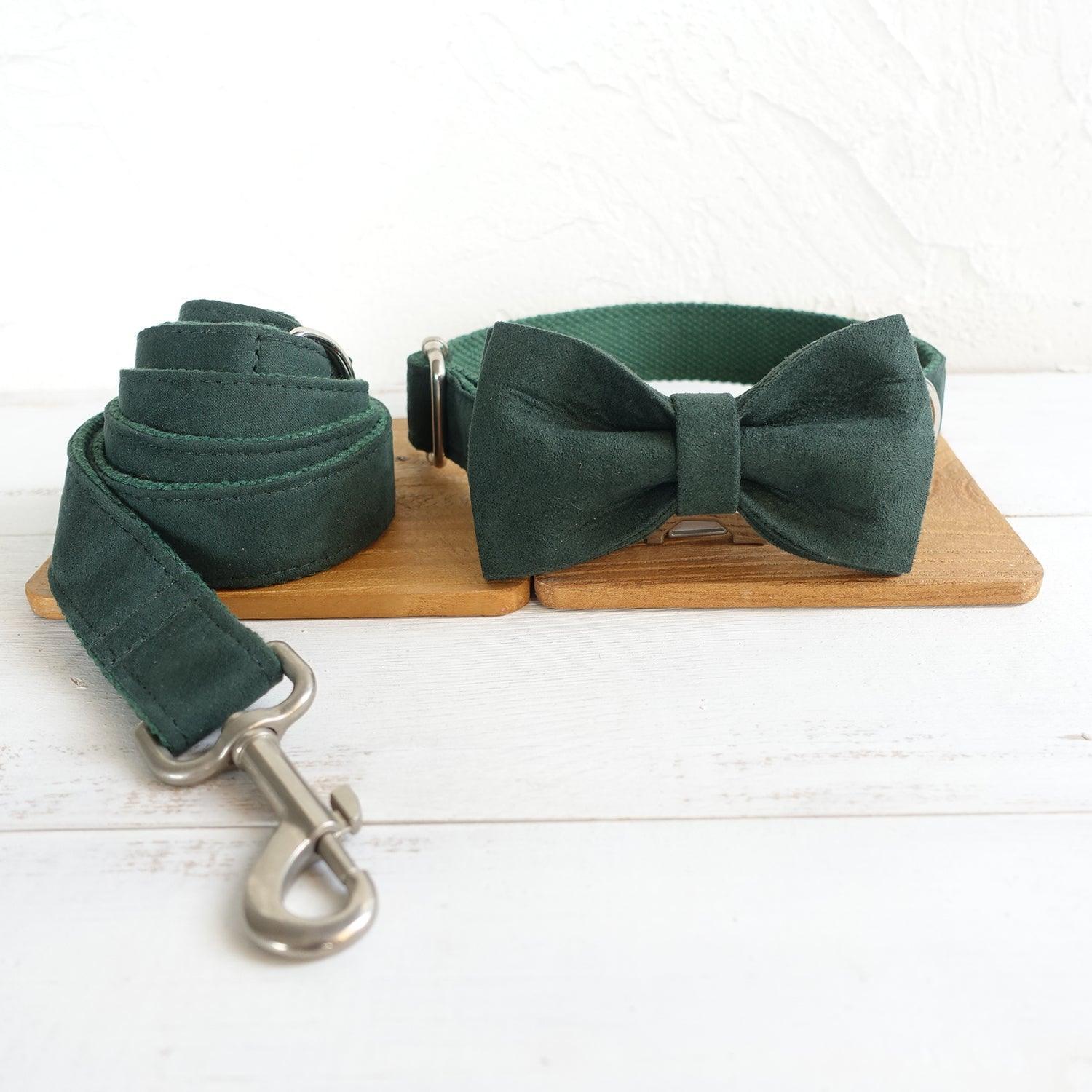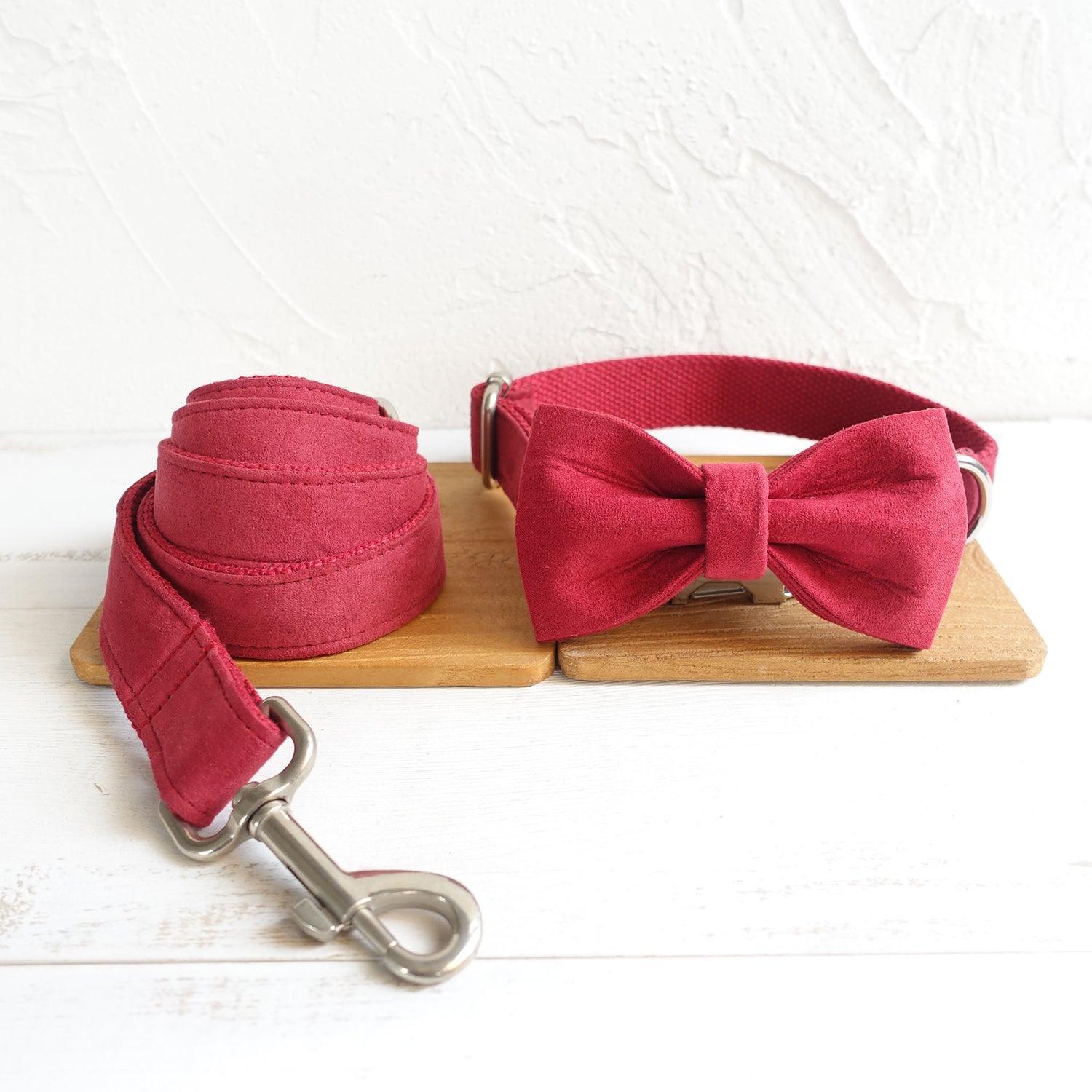 - Material: Made of high – density polyester and a soft, suede – like or velvet fabric for the bow tie, with woven fabric (likely nylon/canvas) for the collar and leash, and shiny stainless – steel – colored metal components.