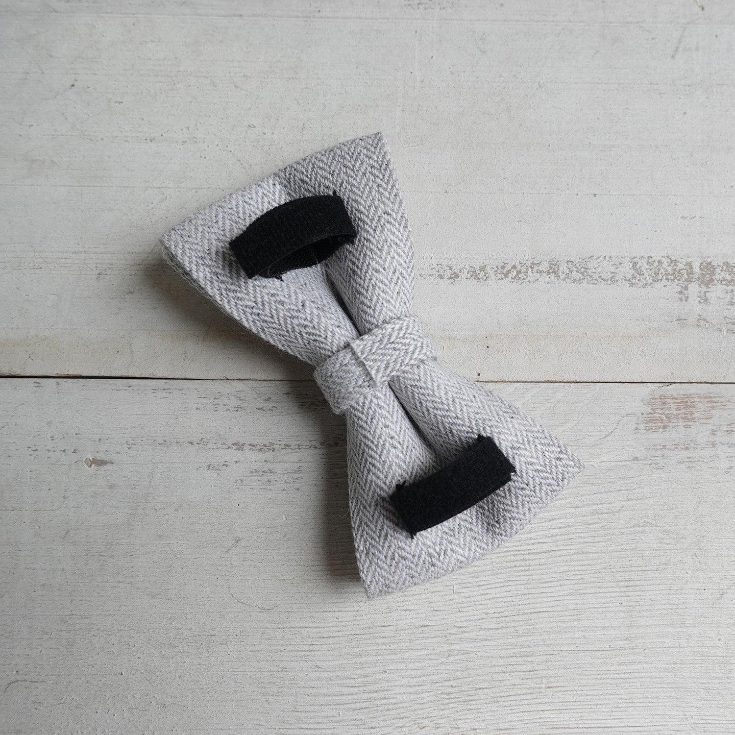 - Design: Classic adjustable buckle closure on the collar, coiled leash design, structured bow – tie with black velcro for attachment