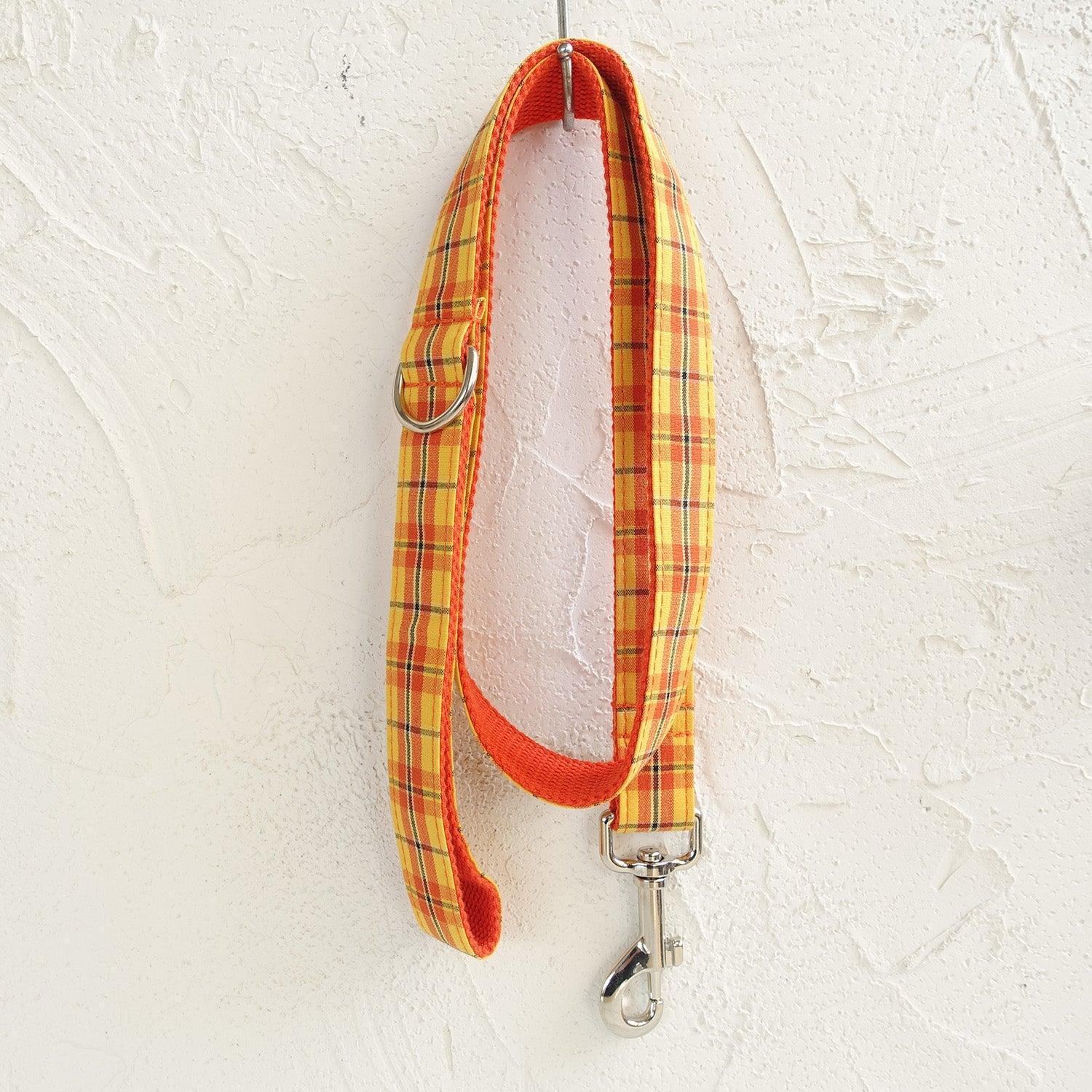 - Material: Woven plaid fabric (likely cotton or cotton blend) with a smooth texture and a soft orange inner lining